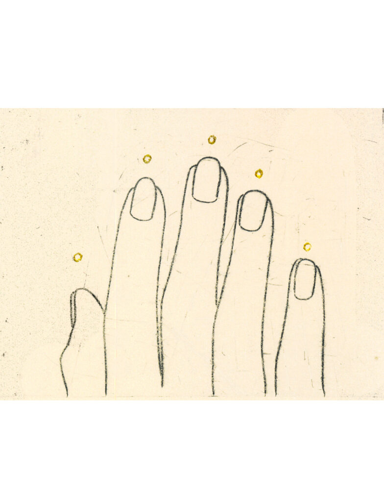 基本的には抑揚がない線・淡々と描かれた線が好きで、あんまり表情がないようにしたいなと思っています。薬品で線を彫る「腐食技法」は、すごく均一で表情のない線が作れるんですけど、ニードルで彫る「直接技法」は均一に彫ったつもりでも抑揚が出てしまうことがあるので、普段は直接技法は使わないんです。今回、環境に選ばされて使っているんですけど、それはそれでいろんな新しい線との出会いがありました。