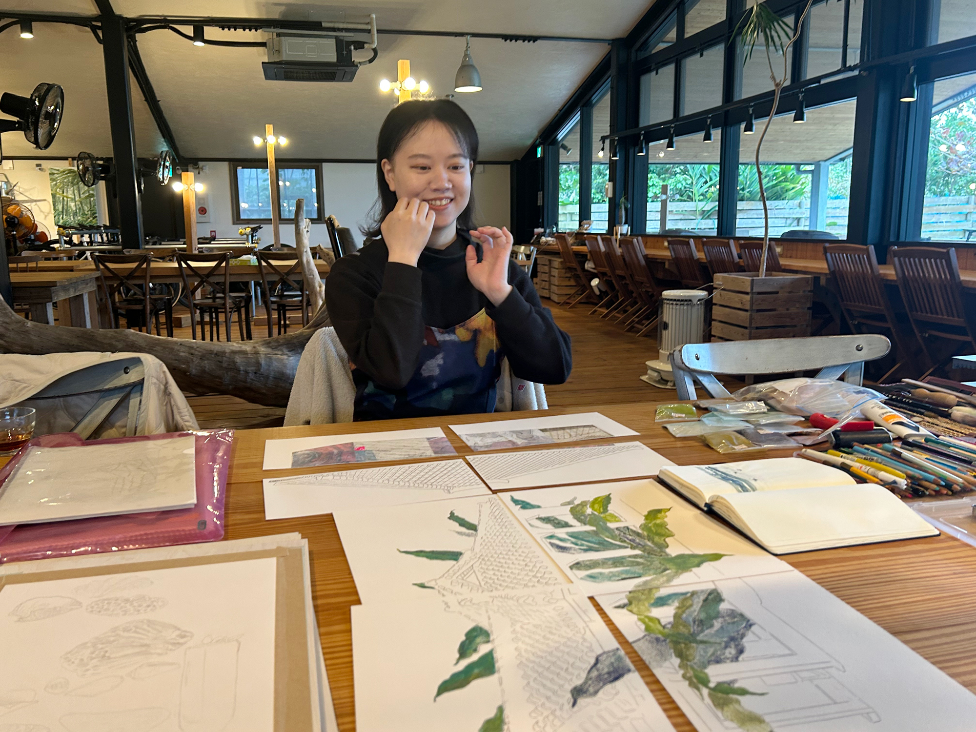 でも、沖縄で⾒ている景⾊が変わったことで、⾃然と私の空想も変わってきて、滞在を経て⽣まれてくるものは東京で描いているときのものとは確実に違うな、と思っています。