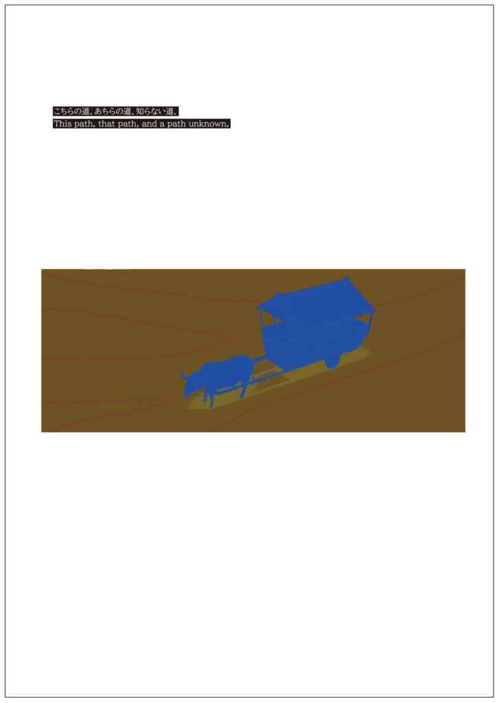(画像⑩)この絵は「画像⑨」と繋がっているんですけど、水牛車を引いている水牛を想像して描きました。水牛が車を引きながら哲学的なことを考えている、という設定です。最近、水牛を触ったんですけど、すごく知的で綺麗な目でジーって見てきて、いいなぁと思いました。道について考えているのかな、なんて想像しました。