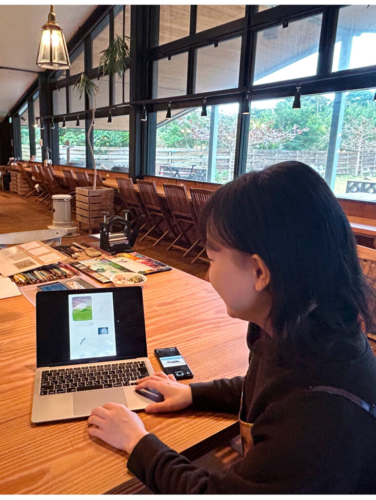 今までも、旅先のことをまとめた小さい本を作ることはできそうだなって思っていたんです。でも画材は重すぎて持ち歩きに向かないし、場所にも制約があるので、なかなか実現できませんでした。でも今回の滞在制作で現実的に動き出せるな、と思い試しているところです。