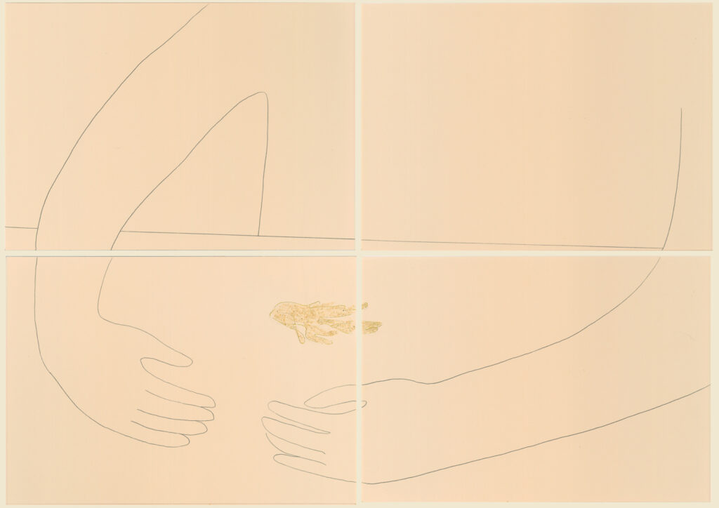 たとえばすごく綺麗な⾊があったとしても、うるさい背景の中に置かれると印象が薄れてしまいますよね。無地の部分があるからこそ、その⾊や線の表現がドキッとするくらい鮮やかに⾒える時があって。そう⾒えたから、そのまま描いたという感覚も⼤きいです。