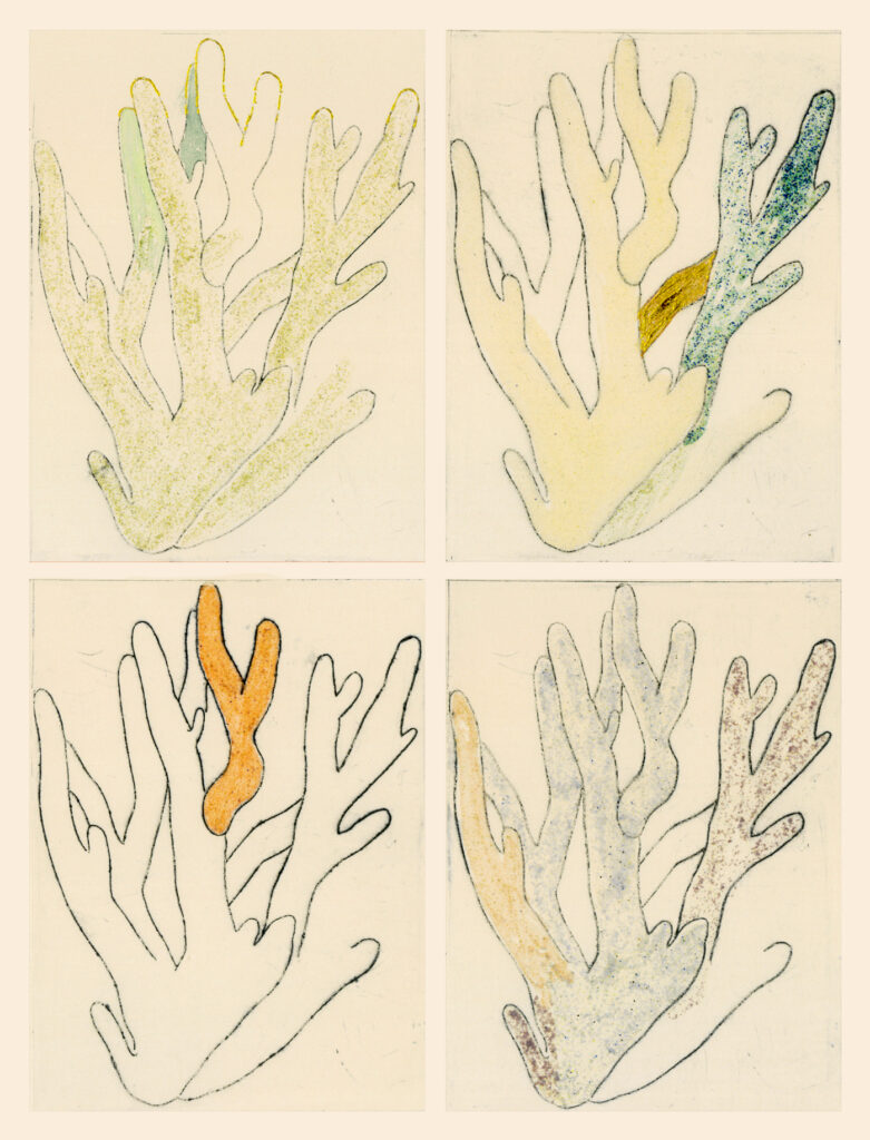 (画像⑤)この作品は近くの具志堅ビーチを散歩していて出会った珊瑚を描きました。散歩をするときは、何かを目当てに探して歩くのでなく、あんまり何にも考えずに歩いて偶然見つかるのを大事にしています。元々こういうニョキっとした形が好きで、植物の枝分かれしている部分や人の指などをよく描くので、自然に目に留まったんだと思います。