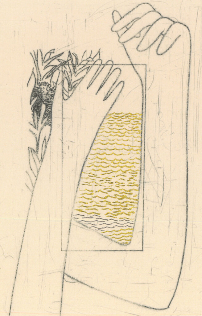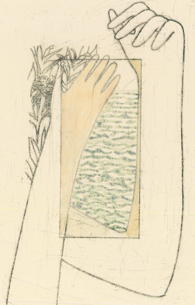 基本的には抑揚がない線・淡々と描かれた線が好きで、あんまり表情がないようにしたいなと思っています。薬品で線を彫る「腐食技法」は、すごく均一で表情のない線が作れるんですけど、ニードルで彫る「直接技法」は均一に彫ったつもりでも抑揚が出てしまうことがあるので、普段は直接技法は使わないんです。今回、環境に選ばされて使っているんですけど、それはそれでいろんな新しい線との出会いがありました。